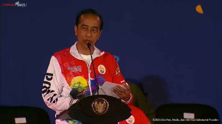 Jokowi lantas mengajak seluruh elemen masyarakat untuk merasakan PON dengan segala suka cita dan menjadi ajang untuk menjalin kebersamaan satu sama lain.