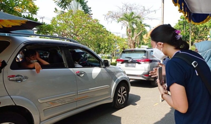 Dilakukan secara drive thru, karena masih situasi pandemi, dan menjaga social distancing sekaligus menjembati masyarakat yang takut datang ke layanan kesehatan.