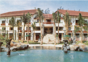 Bangunannya merupakan gabungan arsitektur gaya klasik kota Surabaya dengan citra modern, dibagi ke dalam empat sayap, yaitu sayap bangunan utama, dua bangunan untuk ruangan hotel dan apartemen, menghasilkan sebuah hotel dengan konsep resort di kota, konsep yang sama diterapkan oleh Hotel Singgasana dan Hotel Bumi.