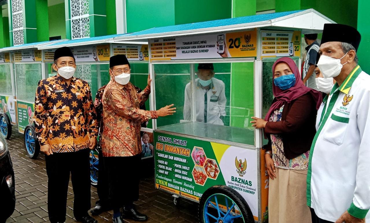 Dalam acara tersebut diberikan santunan kepada 10 anak Yatim dan penyerahan 8 bantuan rombong UMKM dalam rangka Baznas ikut aktif membantu Mustahik dalam Percepatan pemulihan ekonomi Sumenep pasca Pandemi covid 19.