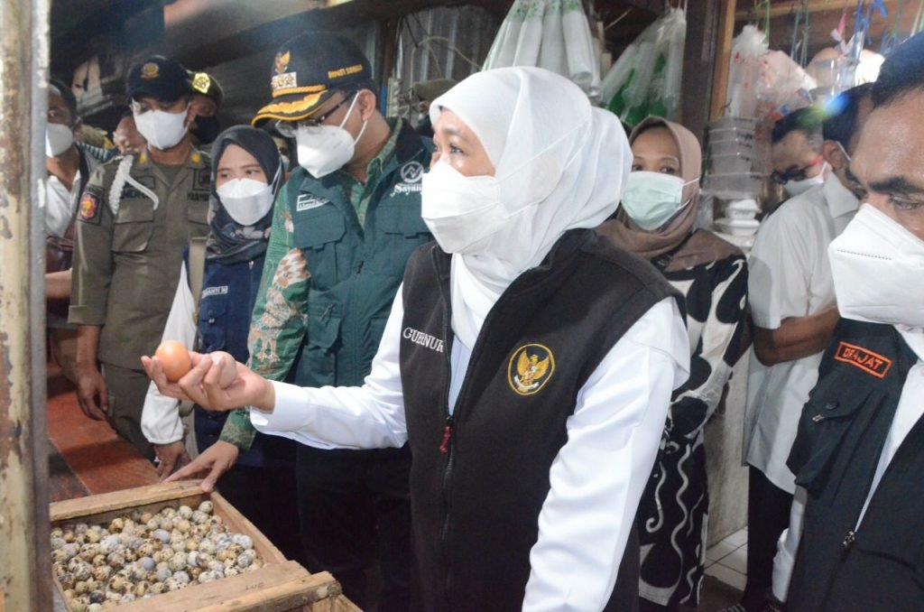 Khofifah menegaskan kembali untuk semua bahan kebutuhan pokok, daging sapi daging ayam di Sidoarjo masih normal, hanya saat ini membutuhkan percepatan suplai adalah minyak goreng curah (Rino)