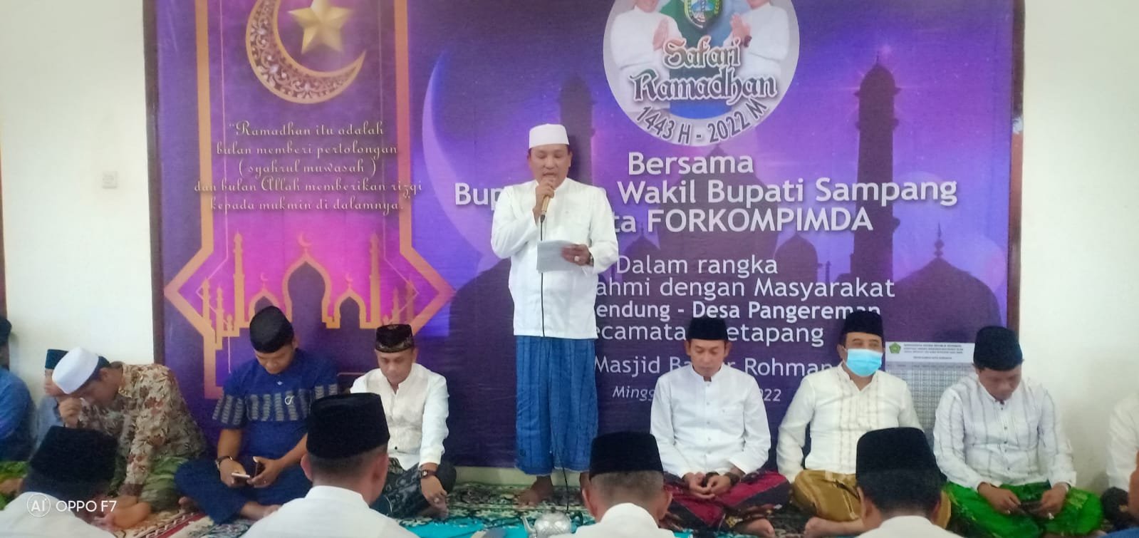 SURABAYAONLINE.CO, Sampang – Bupati Sampang H Slamet Junaidi didampingi Wakil Bupati (Wabub) Sampang H. Abdullah Hidayat menghadiri kegiatan Safari Ramadhan 1443 Hijriyah di Masjid Baiturrahman, Desa Pangereman, Kecamatan Ketapang, Minggu (10/4/2022).