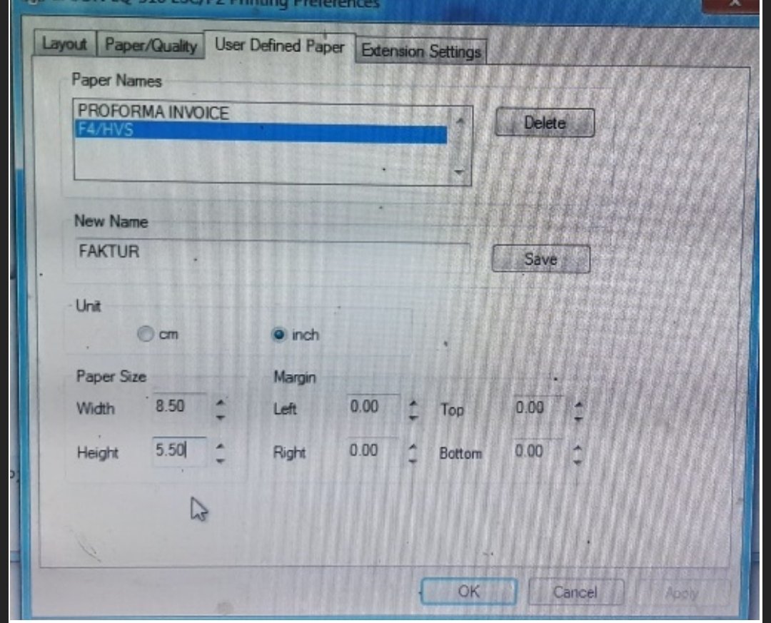 Cara setting ukuran kertas di Epson LQ 310 di windows bisa anda pelajari lebih lanjut di sini :