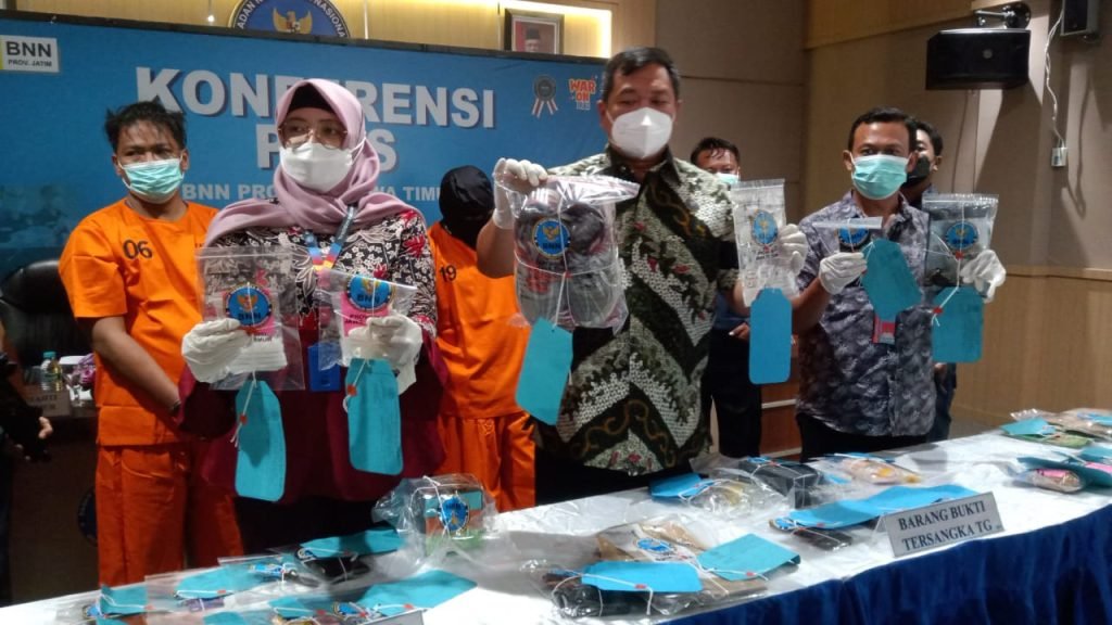 “Keseluruhan tersangka dari hasil ungkap tim BNNP Jatim dipersangkakan Pasal 114 ayat 2 dan atau Pasal 112 ayat 2 Jo Pasal 132 ayat 1 Undang-undang RI Nomor 35 Tahun 2009 tentang Narkotika,” pungkasnya.