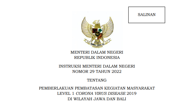 Sebagaimana tercantum dalam Inmendagri 29/2022, pada PPKM Level 1 di Jawa dan Bali, pelaksanaan pembelajaran di satuan pendidikan dapat dilakukan melalui pembelajaran tatap muka terbatas dan/atau pembelajaran jarak jauh.
