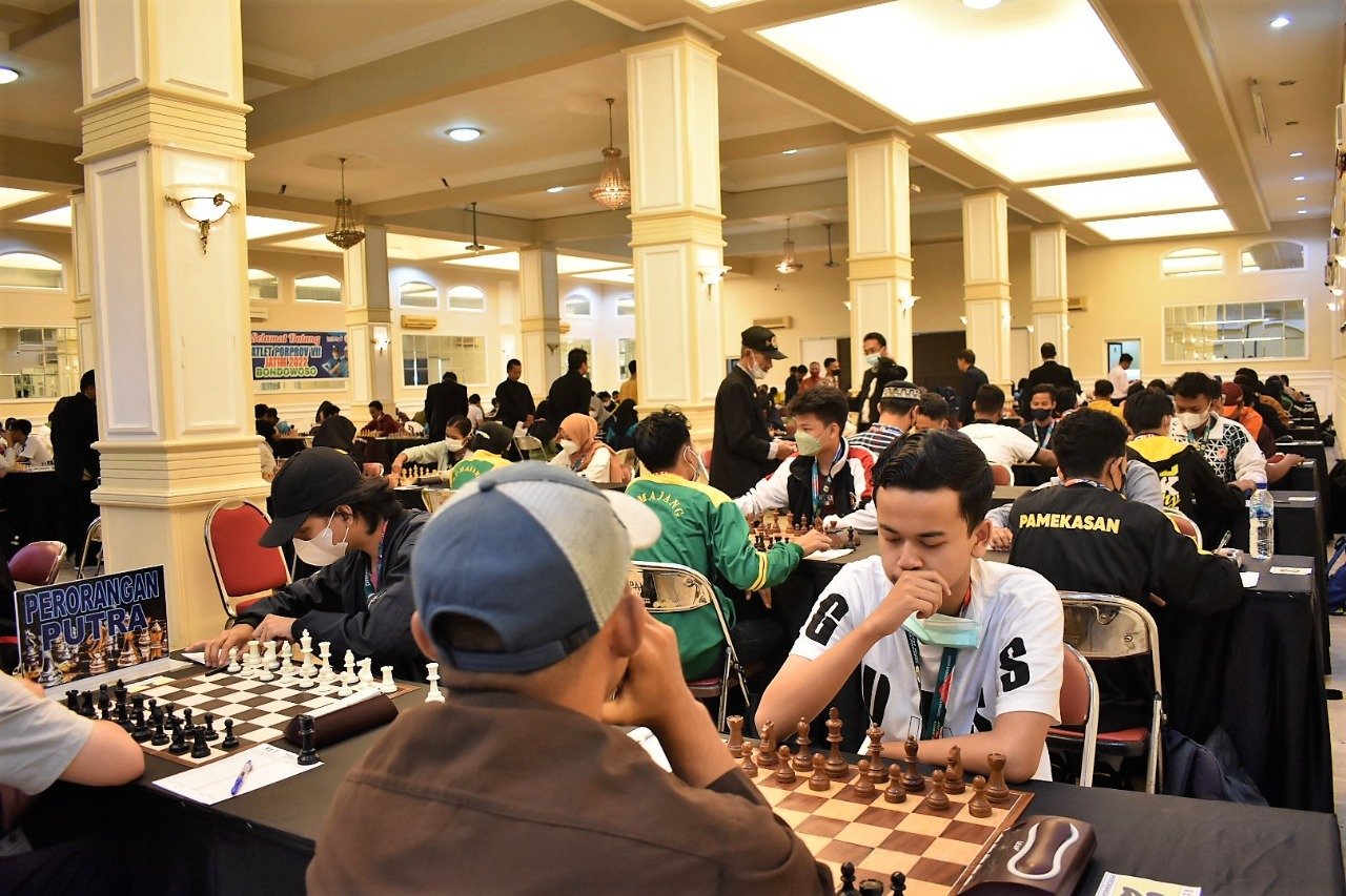 SURABAYAONLINE.CO | Bondowoso – Kabupaten Sidoarjo berhasil mengamankan gelar juara umum cabor catur Porprov VII/2022 Jatim, Jumat (1/7) malam di Palm Hotel, Bondowoso. Sidoarjo mengumpulkan 4 emas 3 perak 3 perunggu. Kejutan hadir di posisi ketiga Kabupaten Bangkalan dengan 3 emas 1 perak menempel ketat Kota Malang.
