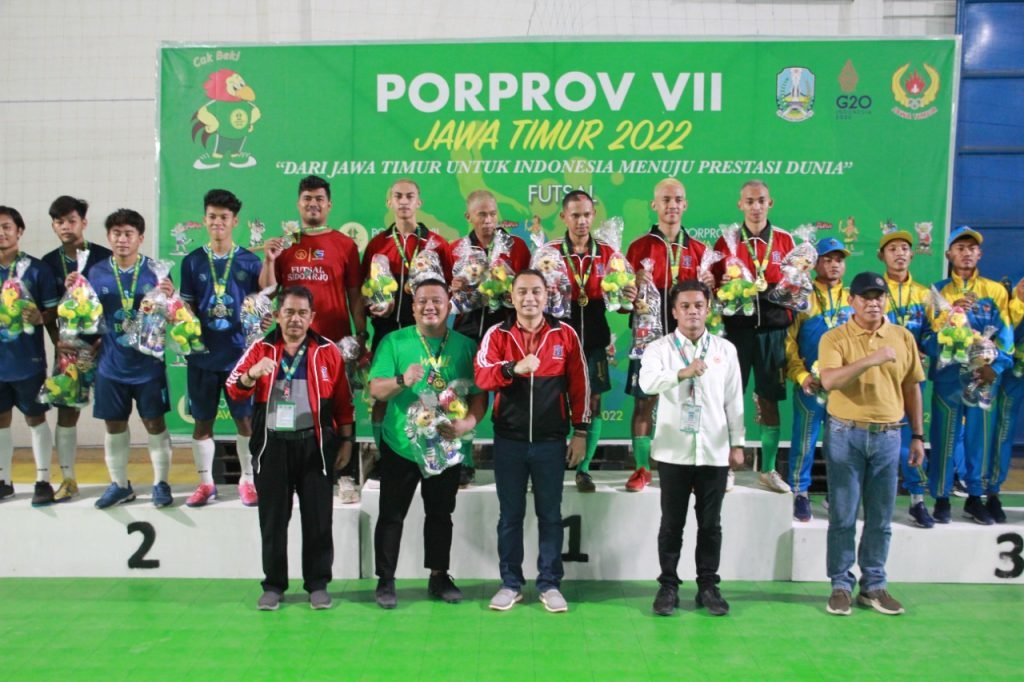 SURABAYAONLINE.CO | Jember – Tim futsal putra Surabaya keluar sebagai juara dan berhak medali emas Pekan Olahraga Provinsi (Porprov) VII/2022 Jatim. Arek-arek Suroboyo menjadi pemenang final futsal putra dengan mengalahkan tetanganya, Sidoarjo 5-1, Minggu (3/7).