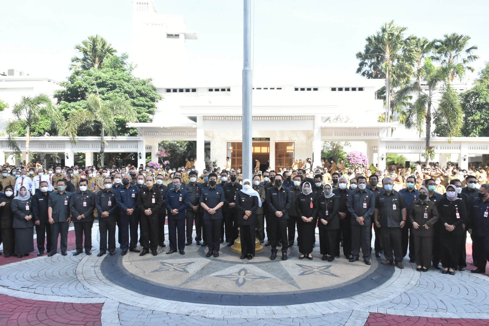 SURABAYAONLINE.CO – Gubernur Jawa Timur, Khofifah Indar Parawansa bersama Wakil Gubernur, Emil Elestianto Dardak memimpin apel Organisasi Perangkat Daerah (OPD) di halaman kantor Sekretariat Daerah Provinsi Jatim Senin (25/7).