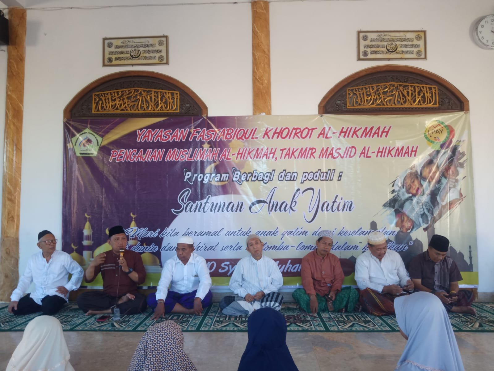 Hadir langsung dalam kegiatan santunan anak yatim dan piatu yang dimaksud, Ketua Yayasan Fastabiqul Khoirot, Dr. Zaiful Muqoddas, S.T., M.Si, beserta seluruh anggota Takmir Masjid Al Hikmah, juga dihadiri oleh sejumlah donatur, Tokoh Masyarakat, Tokoh Ulama dan Ibu-ibu Muslimat setempat.