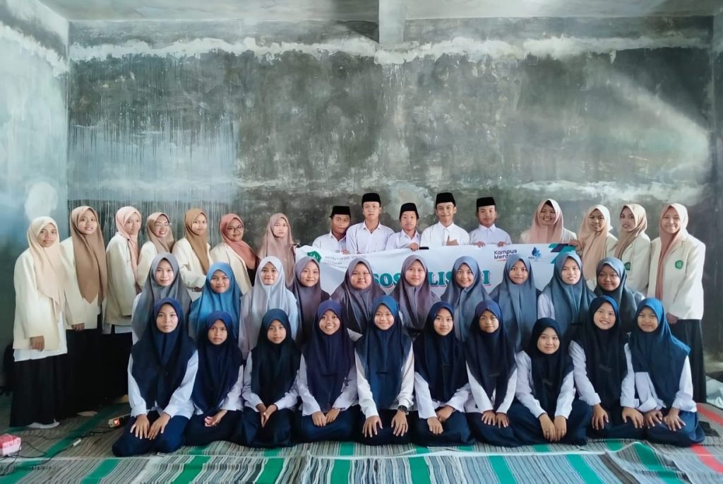 SURABAYAONLINE.CO|Sumenep – Kuliah Kerja Nyata (KKN) 01 Ist Annuqayah Sumenep, Madura, Jawa Timur mensosialisasikan gemar menabung di Yayasan Afifiyah, Dusun Maronggi Daya, Pragaan Sumenep, Kamis (11/8).