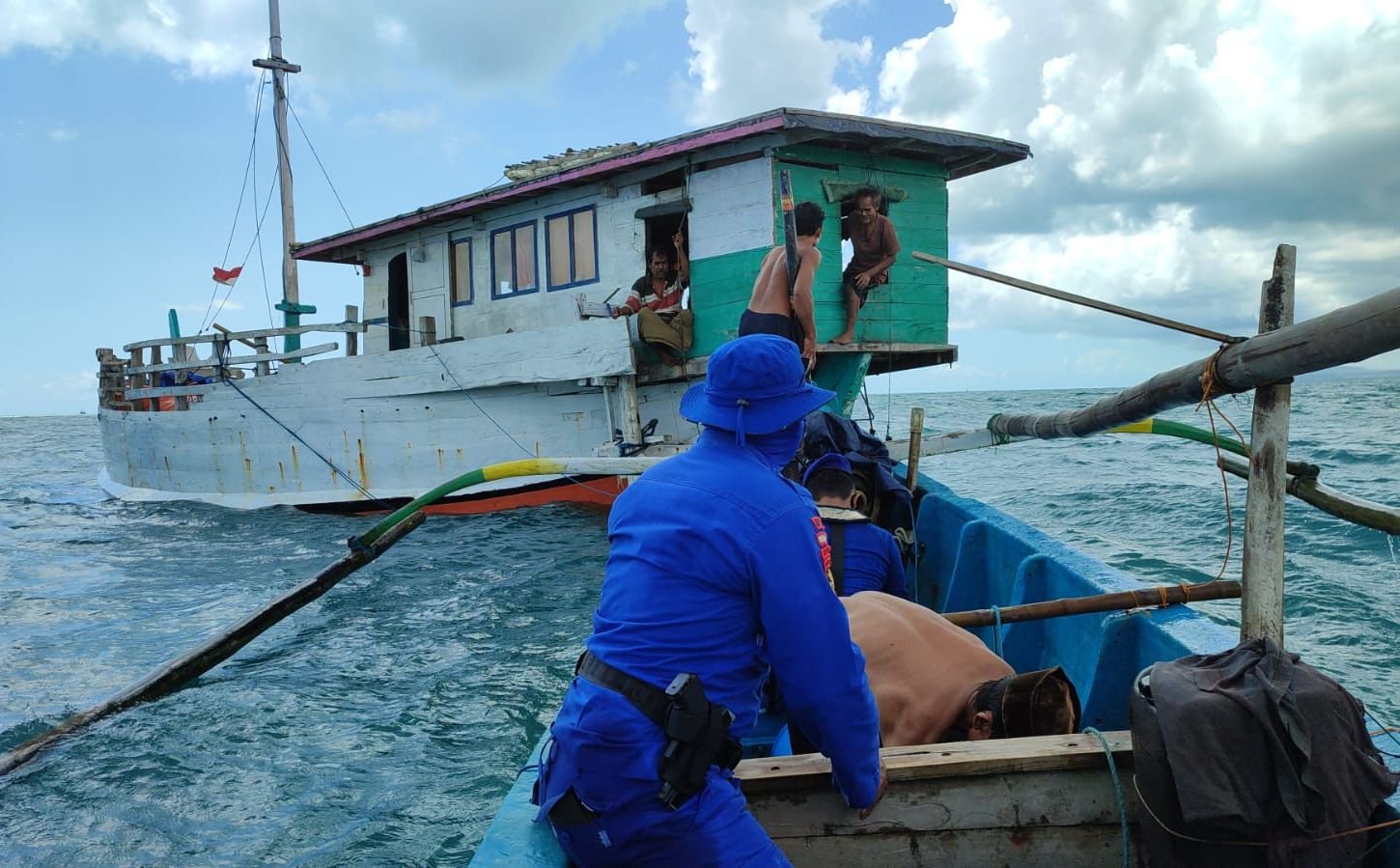 Kapal Layar itu mengirimkan sembako dan perlengkapan yang dibutuhkan berupa Beras 10 Kg, Air mineral 1 dos, gula dan kopi kepada Abk KLM. Cinta Kembar di koordinat 6° 51′ 7.31″ LS. – 113° 44′ 15.75″ BT ( peta terlampir ).