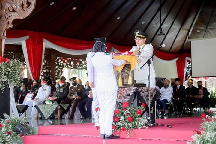 SURABAYAONLINE.CO | Pamekasan – Pemerintah Kabupaten (Pemkab) Pamekasan, Madura, Jawa Timur menggelar upacara pengibaran bendera merah putih dalam rangka merayakan hari ulang tahun (HUT) Republik Indonesia ke 77 di Lapangan Nagara Bhakti Mandhapa Aghung Ronggosukowati, Rabu (17/8).
