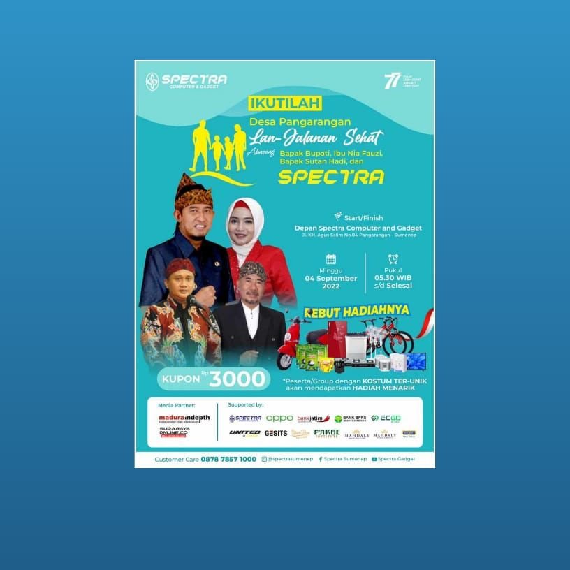 Start dan Finish Lan-jalan sehat di Depan Spectra Computer & Gadget Jalan KH. Agus Salim No. 4, Pangarangan, Sumenep. Ribuan kupon sudah tersebar.