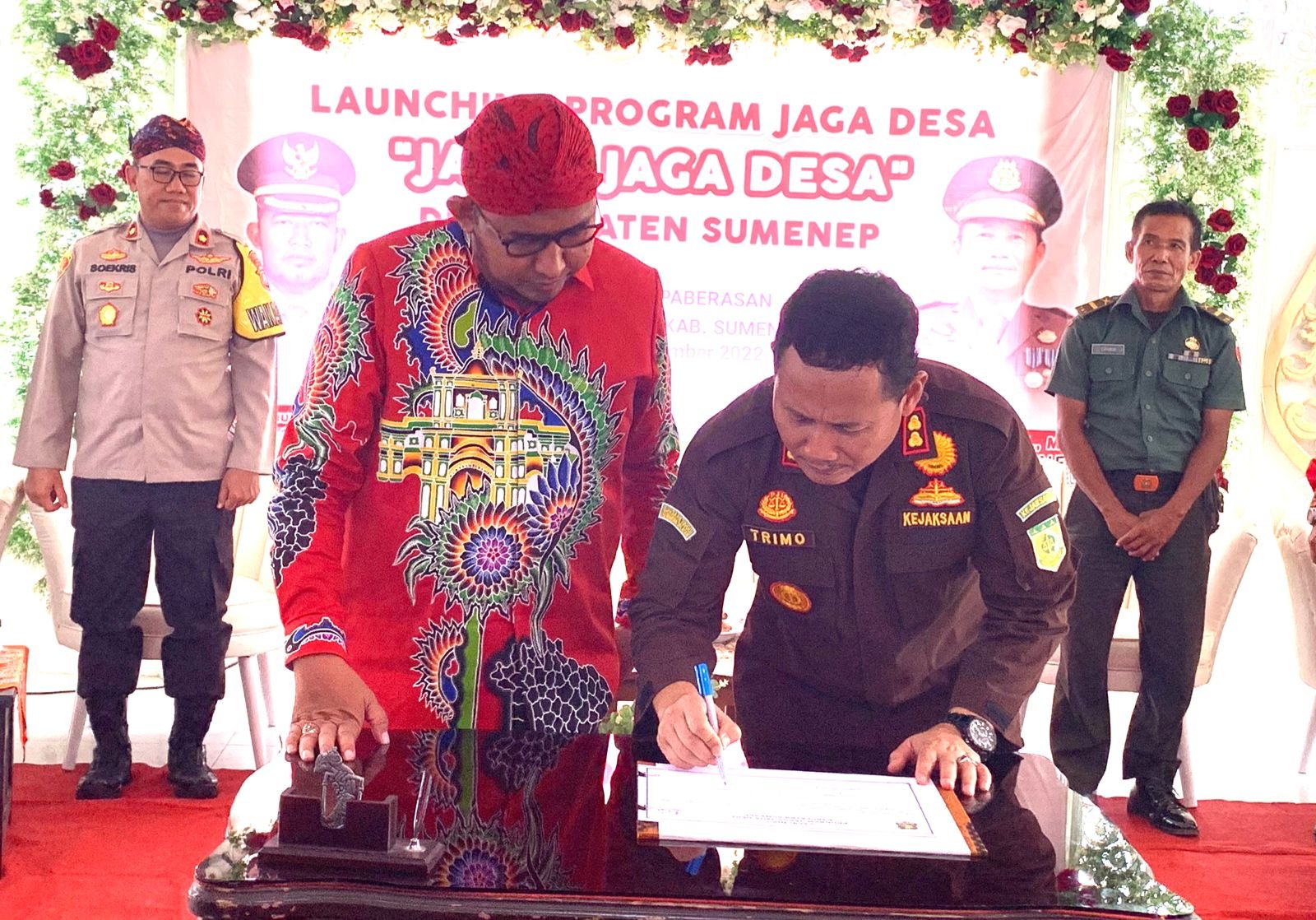Launching program Jaksa Jaga Desa ditandai dengan penandatanganan antara Bupati Achmad Fauzi bersama Kajari Sumenep Trimo.