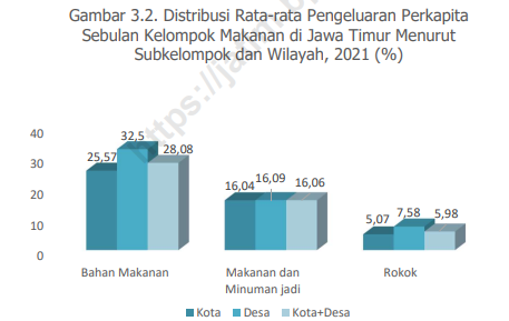 Hal tersebut tercatat di laman resmi Badan Pusat Statistik Provinsi Jawa Timur (BPS Jatim) dalam laporan Pengeluaran untuk Konsumsi Rumah Tangga Provinsi Jawa Timur 2021 sebagaimana dilansir pada tanggal 12 September 2022.