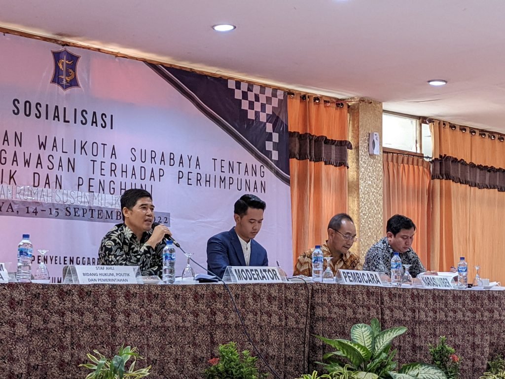Pemerintah Kota Surabaya bersama Badan Hukum dan Kerjasama Sekretariat Daerah Kota Surabaya menyelenggarakan sosialisasi yang mengundang pemilik dan penghuni rusun (rumah susun) yang ada di kota Pahlawan untuk hadir.