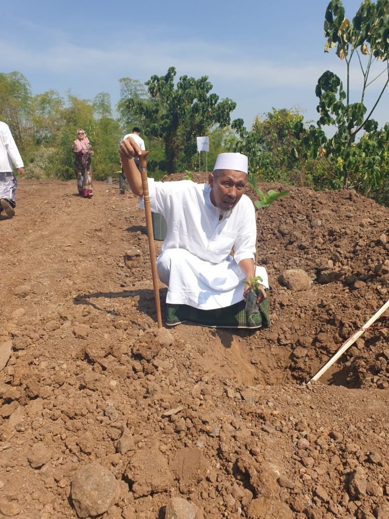 KH Mashudi Nawawi (62) kelihatan antusias tatkala dimulai aksi penanam pohon. Meski harus berjalan dengan menggunakan tongkat, ia ikut menanam pohon didampingi Katiman. Ia merasa mendapat kehormatan dan amanah untuk membudidayakan pohon dalam rangka aksi tanam 10 juta pohon ini. Apalagi sebagian besar masih tanahnya masih kosong.