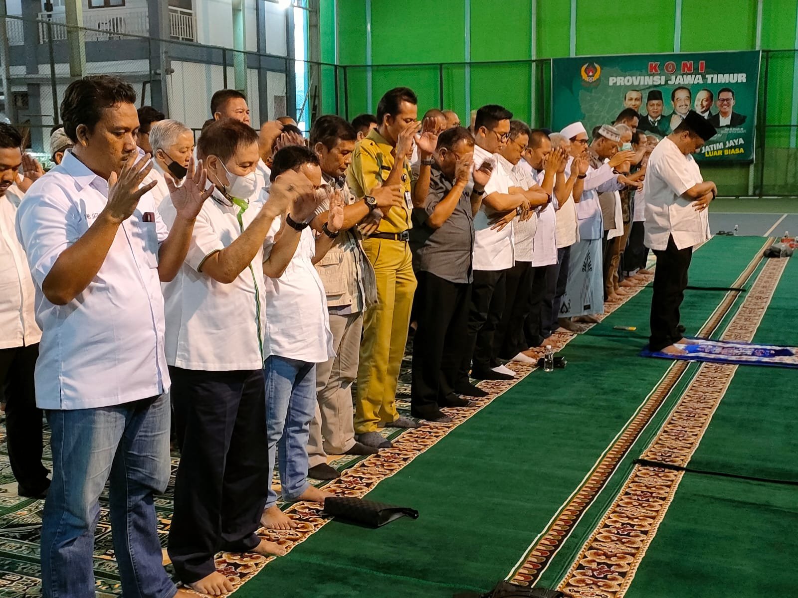 Kegiatan ini diikuti oleh jajaran pengurus dan karyawan KONI Jatim dengan melakukan salat gaib dan doa bersama yang dipimpin Ketua KONI Jatim Muhammad Nabil di Lapangan Tenis KONI Jatim, Selasa (4/10)