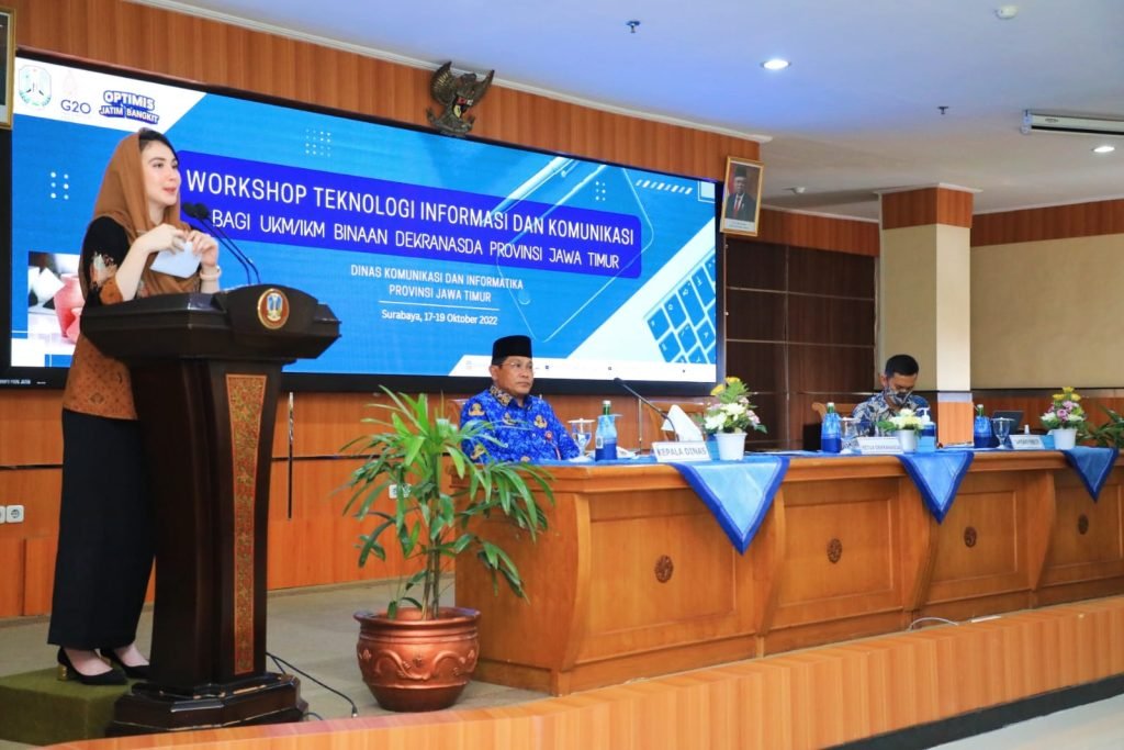 Salah satunya dengan mengadakan workshop Teknologi Informasi dan Komunikasi bagi UMKM binaan Dewan Kerajinan Nasional Daerah (Dekranasda) Provinsi Jawa Timur, di kantor Dinas Komunikasi dan Informatika Provinsi Jawa Timur (Diskominfo Jatim), Senin (17/10).