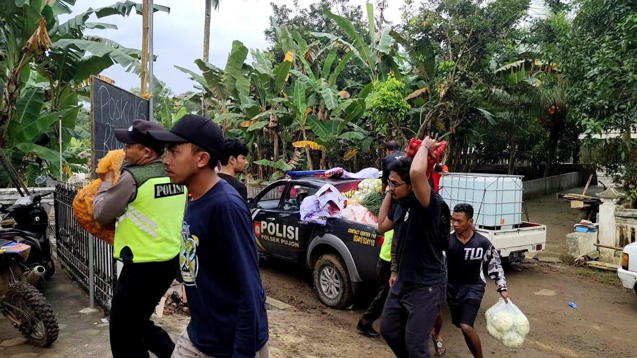 SURABAYAONLINE.CO – Kapolres Batu, AKBP Oskar Syamsuddin melalui Kapolsek Pujon, AKP Purwanto Sigit Raharjo, bersama anggotanya memberikan bantuan pada warga terdampak bencana alam di wilayah Sumber Manjing Wetan, Kabupaten Malang, Jumat (21/10). Bantuan diserahkan langsung oleh Kapolsek Pujon bersama beberapa anggota dan warga masyarakat Pujon.
