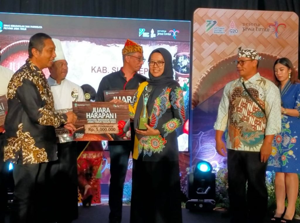 SURABAYAONLINE.CO, Sumenep – Kuliner khas Kabupaten Sumenep, Madura, berhasil meraih juara harapan I pada Festival makanan khas Jawa Timur. Event itu berlangsung pada 26 Oktober 2022.