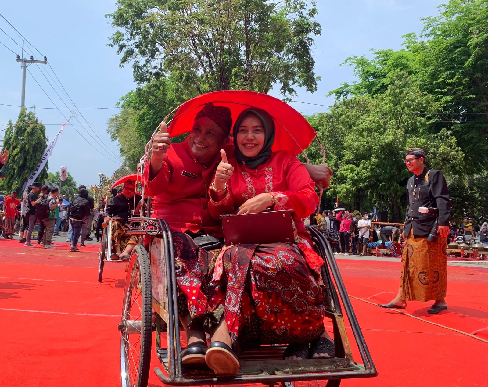 Kepala OPD beserta jajaran Kecamatan menaiki becak bersama pasangannya masing-masing sambil bergenggaman tangan dengan romantis. Ada pula yang seorang diri. Entah kemana pasangan dari OPD yang seorang diri itu.