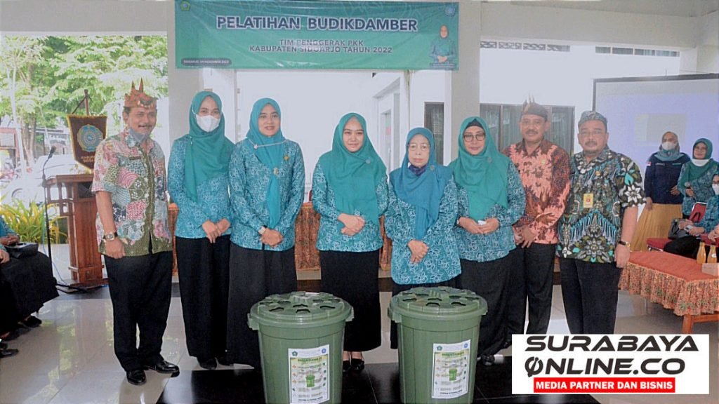 SURABAYAONLINE.CO, Sidoarjo–TP PKK Kabupaten Sidoarjo berkolaborasi dengan Dinas Perikanan Kabupaten Sidoarjo memberdayakan Tim Penggerak PKK Desa se Kecamatan Sukodono dengan pelatihan Budi Daya Ikan dalam Ember (Budikdamber). Pelatihan ini dilaksanakan di Pendopo Kecamatan Sukodono, Kamis (24/11/2022).