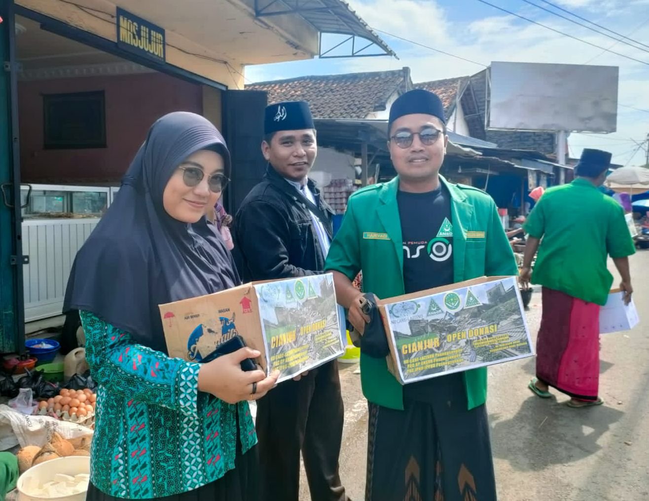 Penggalangan dana korban gempa Cianjur dilakukan dengan turun langsung ke lapangan. Lokasinya sekitar pasar Kecamatan Pasongsongan.