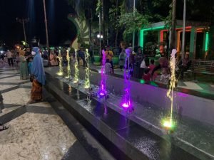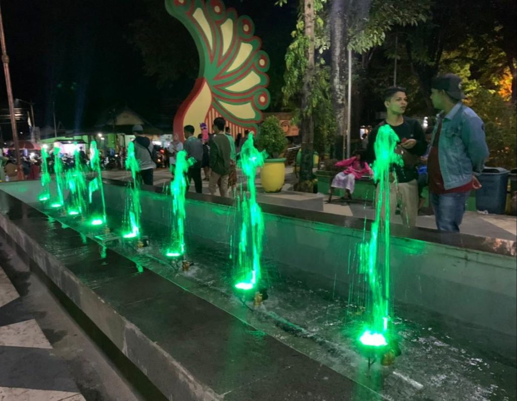 Air mancur menari ini memang sangat unik karena diterangi dengan berbagai macam warna. Dan akan diminati oleh banyak kalangan termasuk anak-anak.