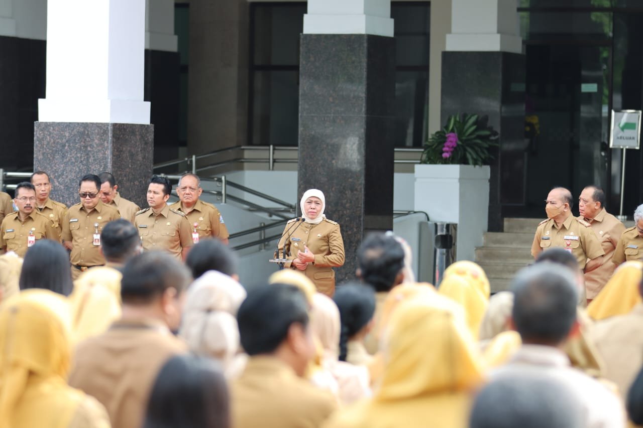 SURABAYAONLINE.CO – Mengawali aktivitas diawal tahun 2023, Gubernur Jatim Khofifah Indar Parawansa memimpin Apel Pagi bersama ASN Pemprov Jatim di halaman kantor Gubernur Jatim di Surabaya, Senin (2/1).