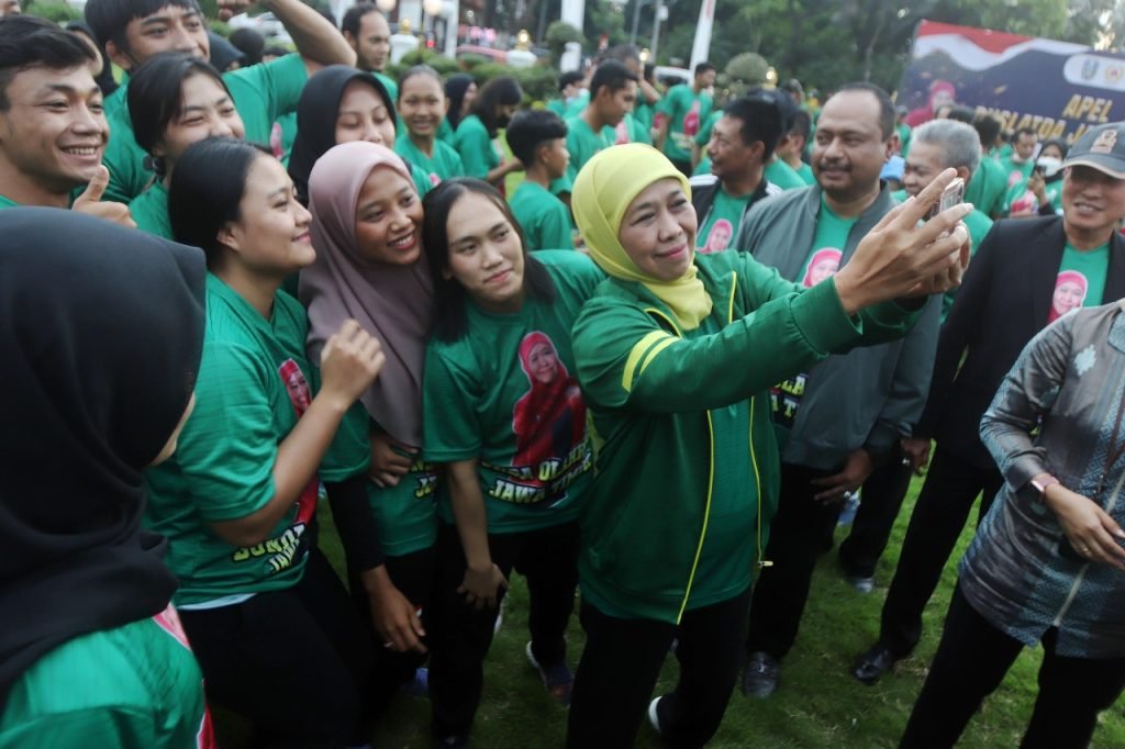 Dalam kesempatan itu, Khofifah memberikan motivasi kepada para atlet Jawa Timur agar semangat menjalani masa persiapan.