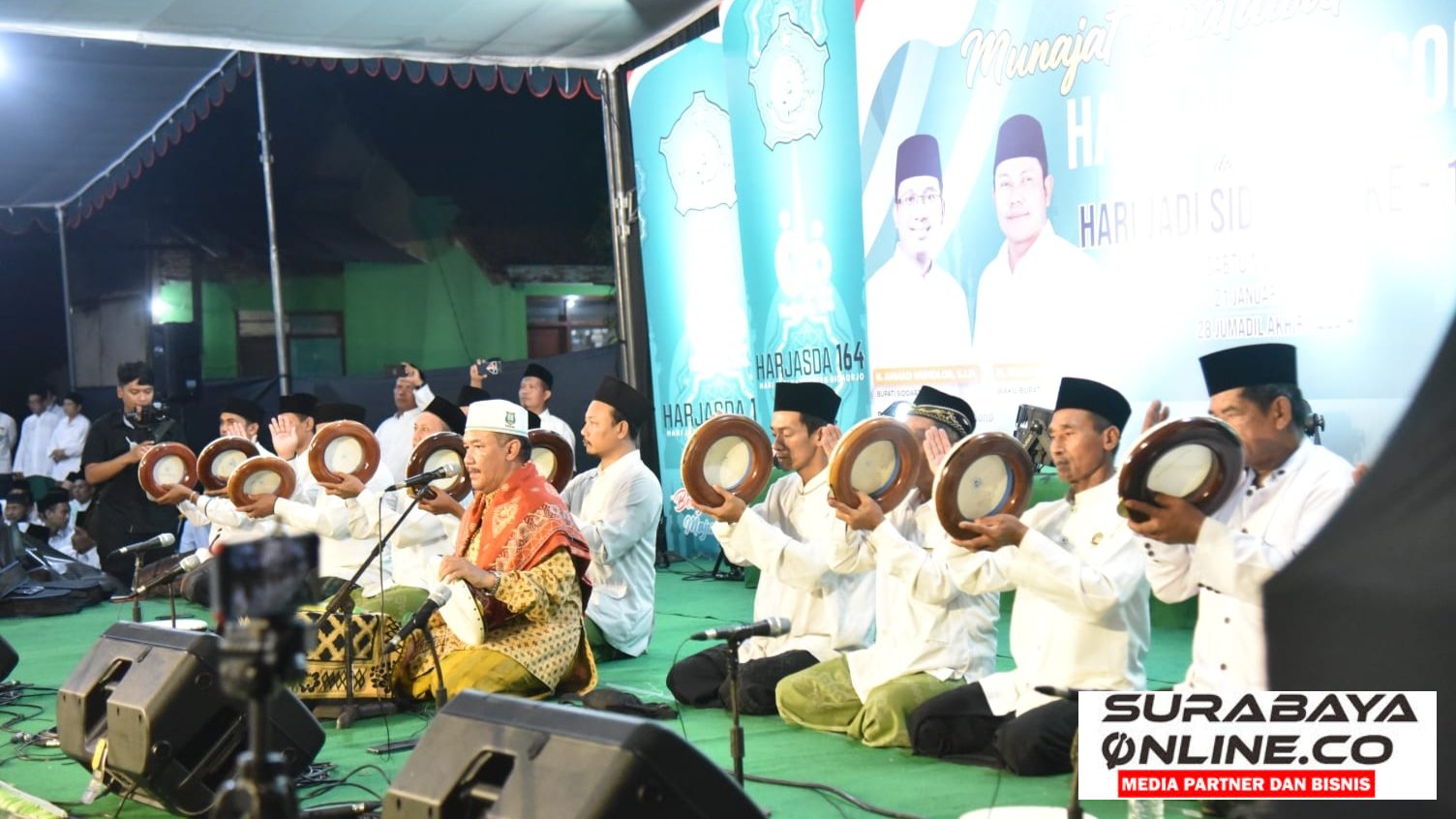 SURABAYAONLINE.CO, Sidoarjo – Lebih kurang lima ribu penerbang Ishari (Ikatan Seni Hadrah Indonesia) se Kabupaten Sidoarjo peringati Hari Jadi Kabupaten Sidoarjo ke 164 Tahun 2023. Mereka menggelar munajat sholawat sekaligus tahlil haul auliya Sono dalam rangka hari jadi Kabupaten Sidoarjo di halaman pesarean auliya Sono Kecamatan Buduran, Sabtu malam, (21/01/2023). Wakil Bupati Sidoarjo H. Subandi SH hadir ditengah-tengah ribuan penerbang Ishari yang datang dari penjuru Kabupaten Sidoarjo.