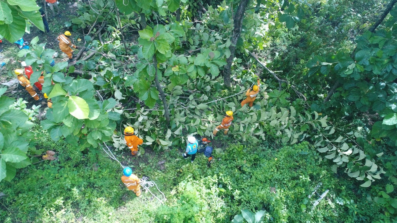 Perabasan tanaman keras sejumlah kurang lebih seratus pohon jati dan pohon bambu diawali Didik dengan memotong pohon jati, dan diselesaikan oleh sejumlah kurang lebih 9 orang personel gabungan Team Rabas dan Ground Patrol Unit Pelaksana Transmisi (UPT) Malang.