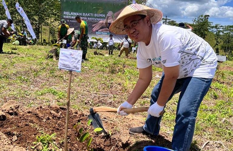 Manajemen PTPN XI yang diwakili SEVP Operation Agus Setiono turut hadir dalam rangkaian program Relawan Bakti BUMN, yaitu penanaman 2500 pohon di Desa Kajarharjo, Kecamatan Kalibaru, Kabupaten Banyuwangi.