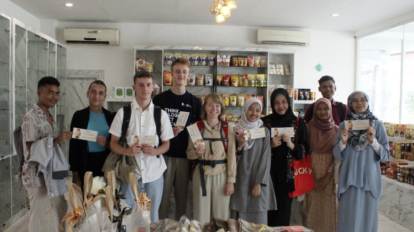 Di kesempatan ini, para mahasiswa asing mulai dari Malaysia, Rusia, Ceko hingga Prancis diajak berkunjung di Surabaya Kriya Galeri MERR. Di situ, mereka juga berbelanja berbagai produk mulai dari tas, aksesoris, hingga baju.