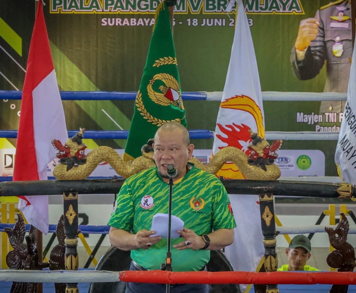 SURON.CO, Surabaya – Ketua Umum Pengurus Besar Muay Thai Indonesia (PB MI), yang juga Ketua DPD RI AA LaNyalla Mahmud Mattalitti mengatakan filosofi beladiri Muay Thai harus menjadi karakter bangsa.
