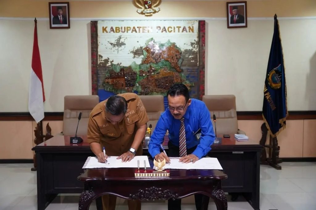 Penandatanganan nota kerja sama dilakukan Bupati Pacitan Indrata Nur Bayuaji dengan Kepala BPR Jatim Cabang Pacitan Maksum di ruang rapat bupati. “Untuk BPR Jatim semoga dengan kerja sama ini UMKM Pacitan semakin berkembang dengan pinjaman bunga murah,”kata bupati.