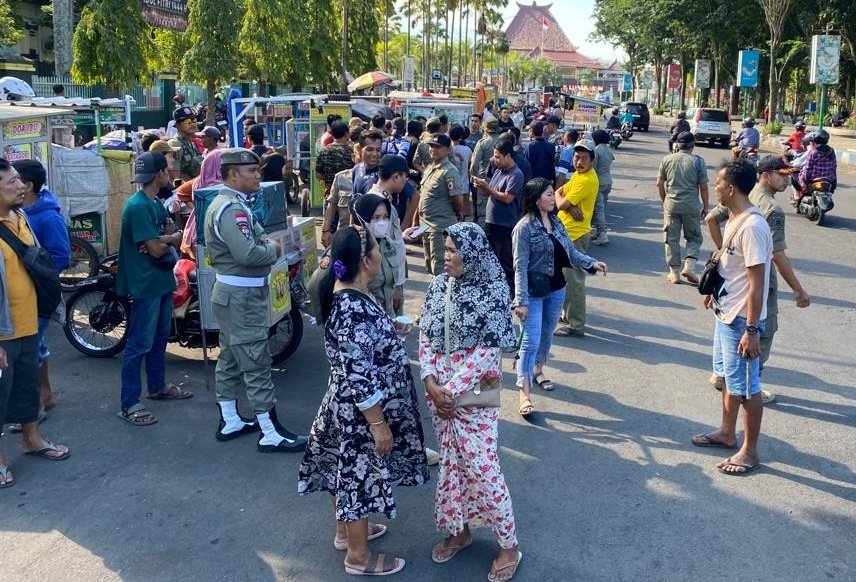 Saat ini, alun-alun dipenuhi ratusan pedagang kaki lima (PKL) dan pelaku UMKM. “Kok seperti pasar alun-alun sekarang? Iya, memang seperti pasar. Kita kemarin masih pandemi. Kita butuh makan. Saya bisa saja (melarang) jangan di alun-alun. Biar mulus alun-alunnya. Bisa. Tapi di mana keanugerahan tadi?” ujarnya.