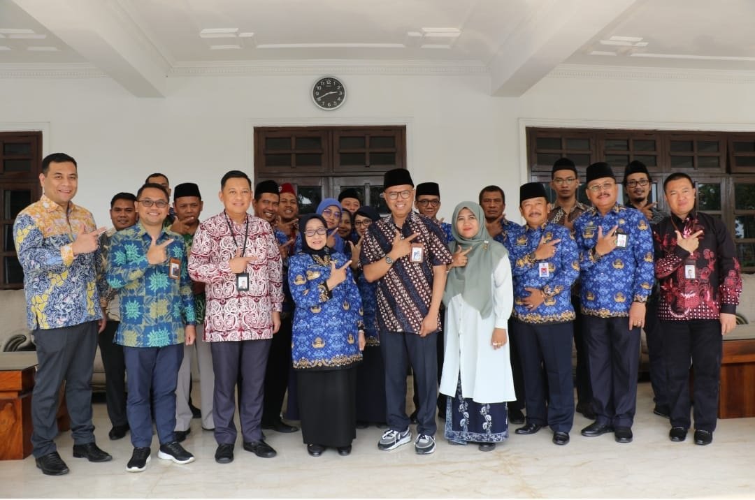SURON.CO, Jombang – Tim Komite Nasional Ekonomi dan Keuangan Syariah (KNEKS) yang dipimpin Putu Rahwidiyasa melakukan kunjungan ke Jombang. Mereka diterima Bupati Jombang Mundjidah Wahab, Ketua Forum Komunikasi Jombang Jaga Halal (Bang Jalal) Kabupaten Jombang Purwanto, dan beberapa pejabat terkait.