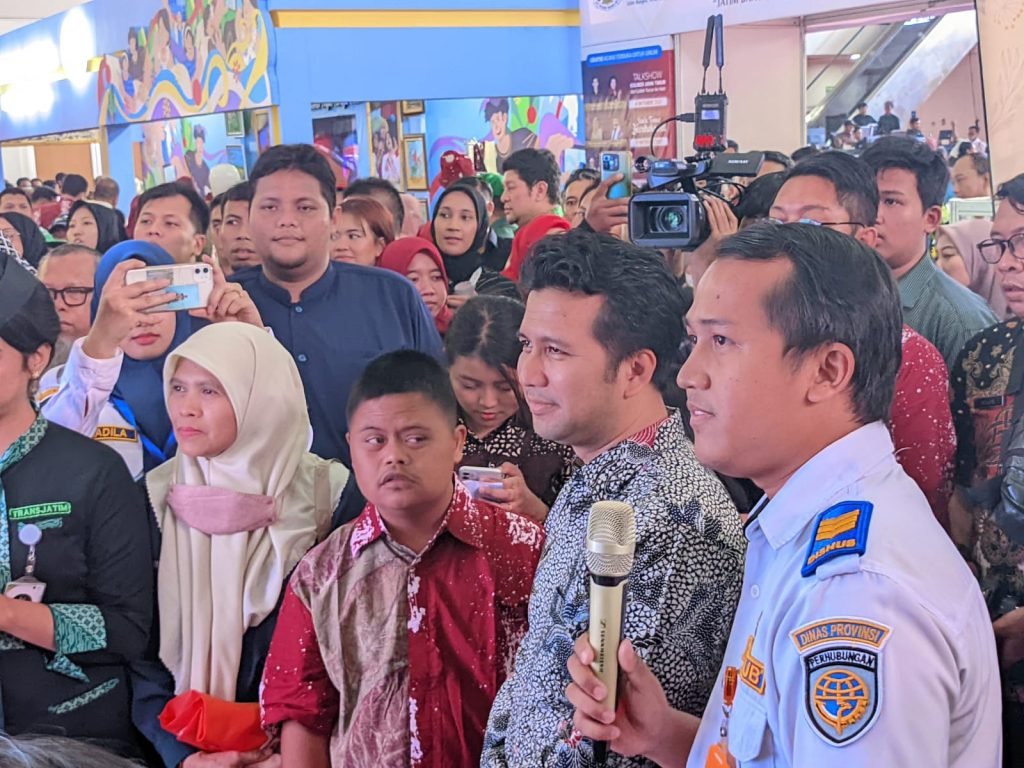 Dari stand Dishub Provinsi, Emil juga mengunjungi stand milik Dinas Sosial Kota Surabaya yang ditempati oleh anak-anak penyandang disabilitas. Pada stand tersebut para penyandang disabilitas memperlihatkan karya mereka yang juga bisa bersaing dengan orang-orang normal pada umumnya.