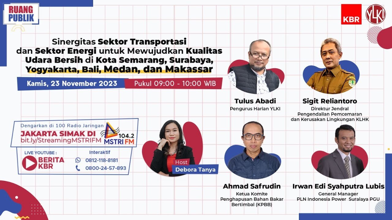 Mengacu pada fenomena tersebut, YLKI telah melakukan dialog publik pada Kamis, 23/11/23, dengan tajuk: Sinergitas Sektor Transportasi dan Energi dalam Pengendalian Pencemaran Udara di Indonesia, khususnya di Medan, Semarang, Yogyakarta, Makasar dan Denpasar. Dialog publik dilakukan secara daring dan disiarkan langsung oleh Radio KBR, dan direlai oleh ratusan jaringaan radio di daerah.