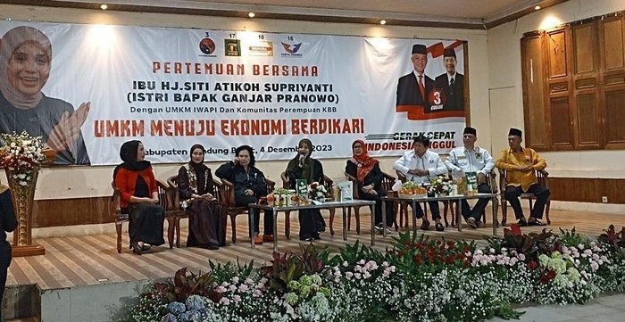 SURON.CO, Bandung – Sektor UMKM di wilayah Bandung Raya sangat potensial. Hal ini diungkapkan istri calon presiden (capres) nomor urut 3 Ganjar Pranowo, Siti Atikoh. Dia bertemu dengan ratusan pelaku UMKM se-Bandung Raya beserta Komunitas Perempuan KBB.