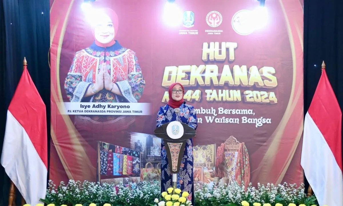 SURON.CO, Surabaya – Penjabat (Pj) Ketua Dewan Kerajinan Nasional Daerah Provinsi Jawa Timur (Dekranasda Jatim) Isye Adhy Karyono menghadiri peringatan Hari Ulang Tahun (HUT) ke-44 Dewan Kerajinan Nasional Tahun 2024 di Surabaya.