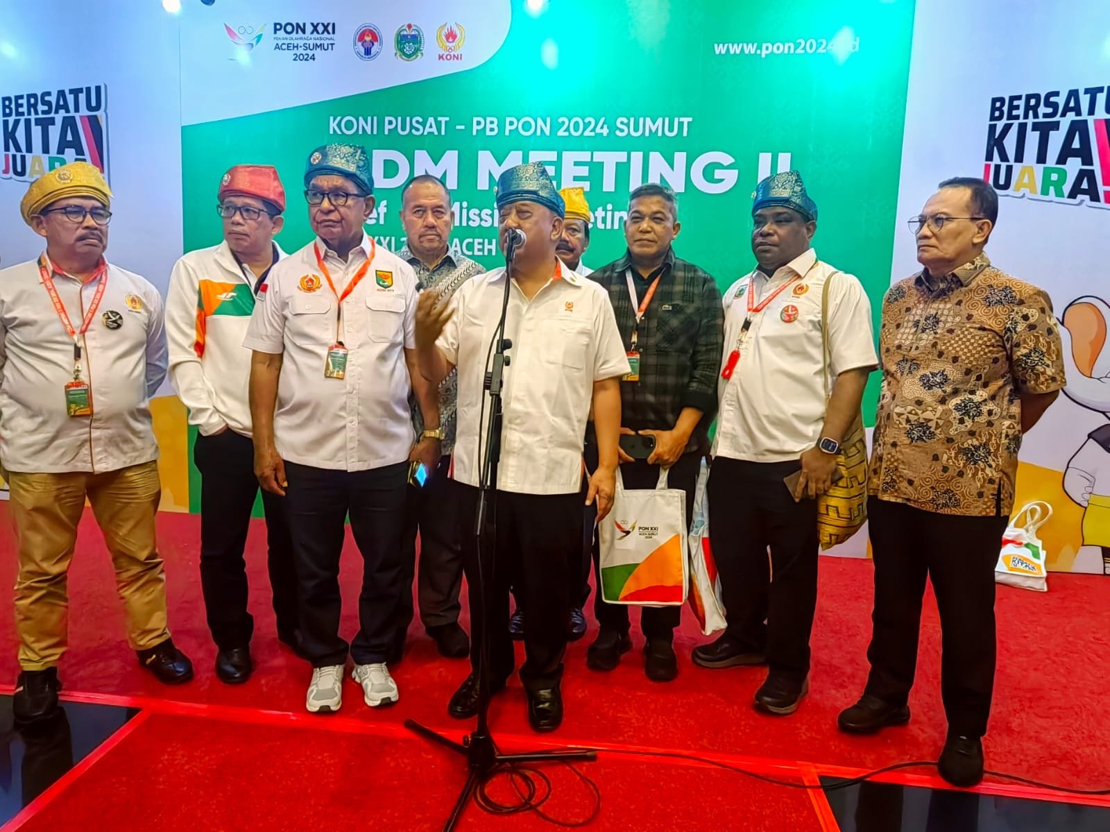 SURON.CO, Medan – Chef de Mission (CdM) Meeting II, Pekan Olahraga Nasional (PON) XXI Aceh-Sumatera Utara Tahun 2024, wilayah Sumatera Utara resmi dibuka oleh Ketum Komite Olahraga Nasional Indonesia (KONI) Pusat, Letjen TNI Purn Marciano Norman, di Kota Medan, pada 24 Juni 2024.