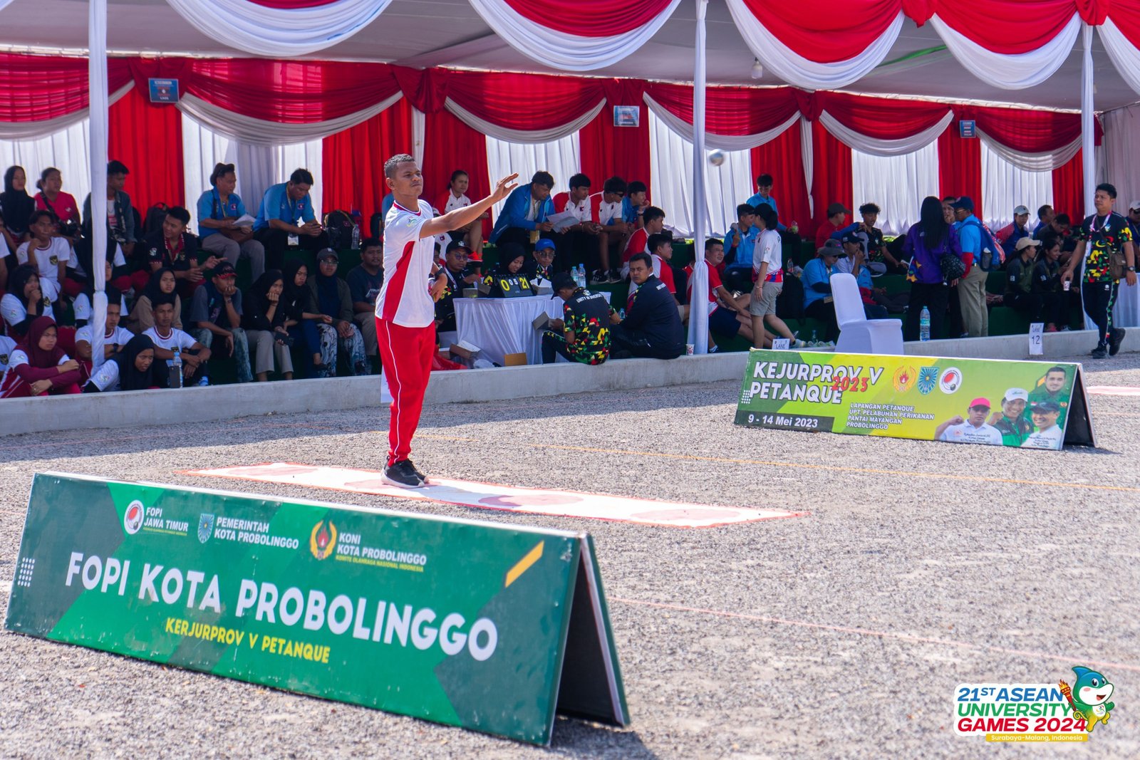 SURON.CO, Surabaya – Tim petanque Indonesia, di hari pertama hanya mampu meraih 1 medali perunggu di nomor Shooting Men, atas nama Harliza Muhammad Muklis, di Lapangan Petanque, Kampus Unesa Lidah Wetan, Surabaya, Rabu (26/6/2024) sore.