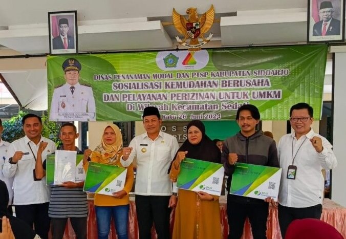 SURON.CO, Sidoarjo – Dinas Penanaman Modal Pelayanan Terpadu Satu Pintu (DPM PTSP) Pemkab Sidoarjo menggelar sosialiasi perizinan di Kantor Kecamatan Sedati. Kegiatan ini dihadiri Plt Bupati Sidoarjo Subandi. Ia terus menunjukkan kepeduliannya kepada para pelaku UMKM. Tujuannya, agar pelayanan perizinan semakin mudah bagi para pelaku UMKM.