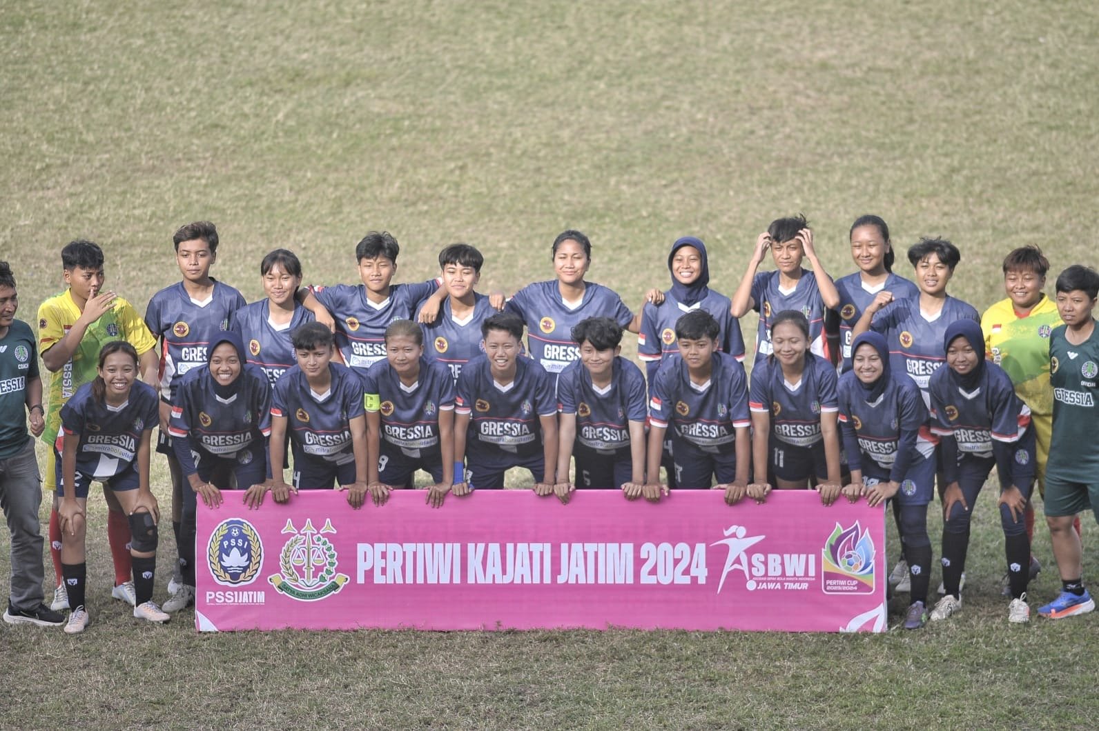 SURON.CO, Lumajang – Gressia FC Gresik, berhasil menyabet gelar juara Pertiwi Kajati Cup Jatim 2024. Mereka menyudahi perlawanan Persikoba Putri Kota Batu dengan skor 2-1 pada laga final di Stadion Semeru, Lumajang, Rabu (10/7/2024) sore.
