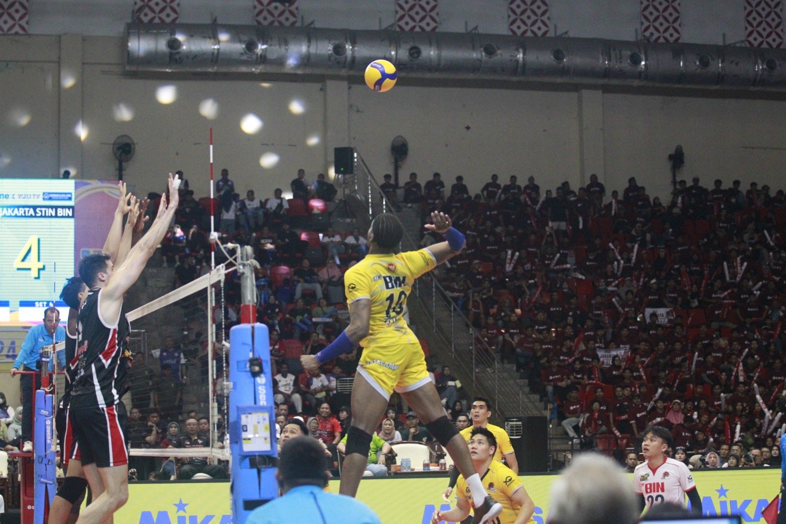 SURON.CO, Semarang – Juara bertahan putra, Jakarta LavAni Allobank Electric kembali menuai kemenangan, usai menaklukkan Jakarta STIN BIN 3-1 (25-19, 22-25, 25-18, 25-17) pada laga kelimanya di putaran final four PLN Mobile Peoliga 2024 di GOR Jatidiri, Semarang, Sabtu (13/7/2024).