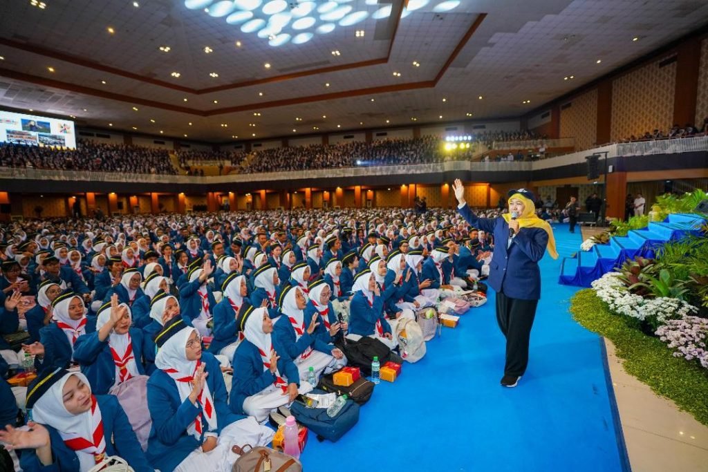 SURON.CO, Surabaya – Ketua Umum Ika Unair Khofifah Indar Parawansa membakar semangat para mahasiswa baru Universitas Airlangga (Unair) yang baru saja dikukuhkan oleh rektor Unair di Airlangga Convention Center Surabaya, Rabu (14/8).