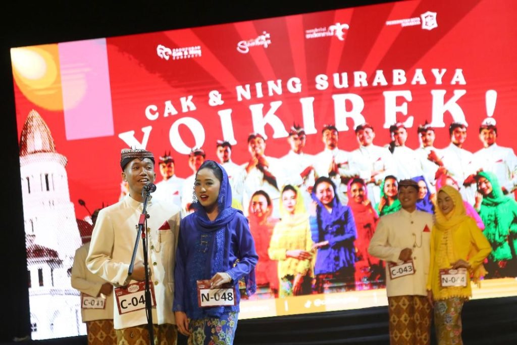SURABAYAONLINE.CO, Surabaya– Dinas Kebudayaan, Kepemudaan, dan Olahraga, serta Pariwisata (Disbudporapar) Kota Surabaya bersama Paguyuban Cak dan Ning Surabaya (PCNS) menggelar semifinal pemilihan Cak dan Ning Kota Surabaya 2024 di Balai Budaya, Dalam gelaran semifinal tersebut, 15 pasangan Cak dan Ning terpilih untuk melanjutkan ke babak final yang akan diadakan tanggal 7 September 2024.
